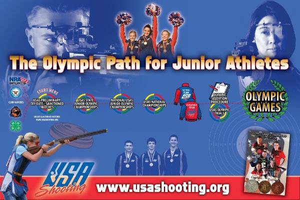 The National Junior Olympic program provides competitions year-round for shooters to partake in. Junior shooters are able to participate in State Competitions sanctioned by USA Shooting, allowing them the chance to receive an invitation to shoot at the National Junior Olympic Championships hosted by USA Shooting in Colorado Springs, Colorado, every April. Click here to view the poster of the Olympic Path for Junior Athletes.